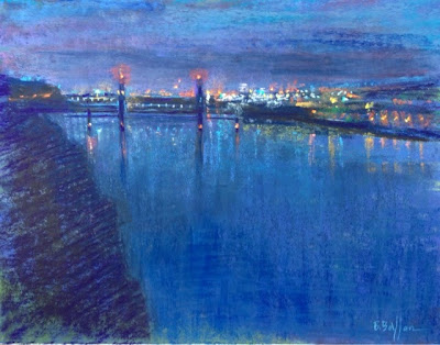 Eric Bowman called a few artists known for nocturne painting to paint along with him for a "Blue Moonrise" over The Tualatin River Waster Refuge. (A Blue Moon is normally a full moon twice in one month, but this month it was out 3 times.) Read more about the Blue Moon HERE.